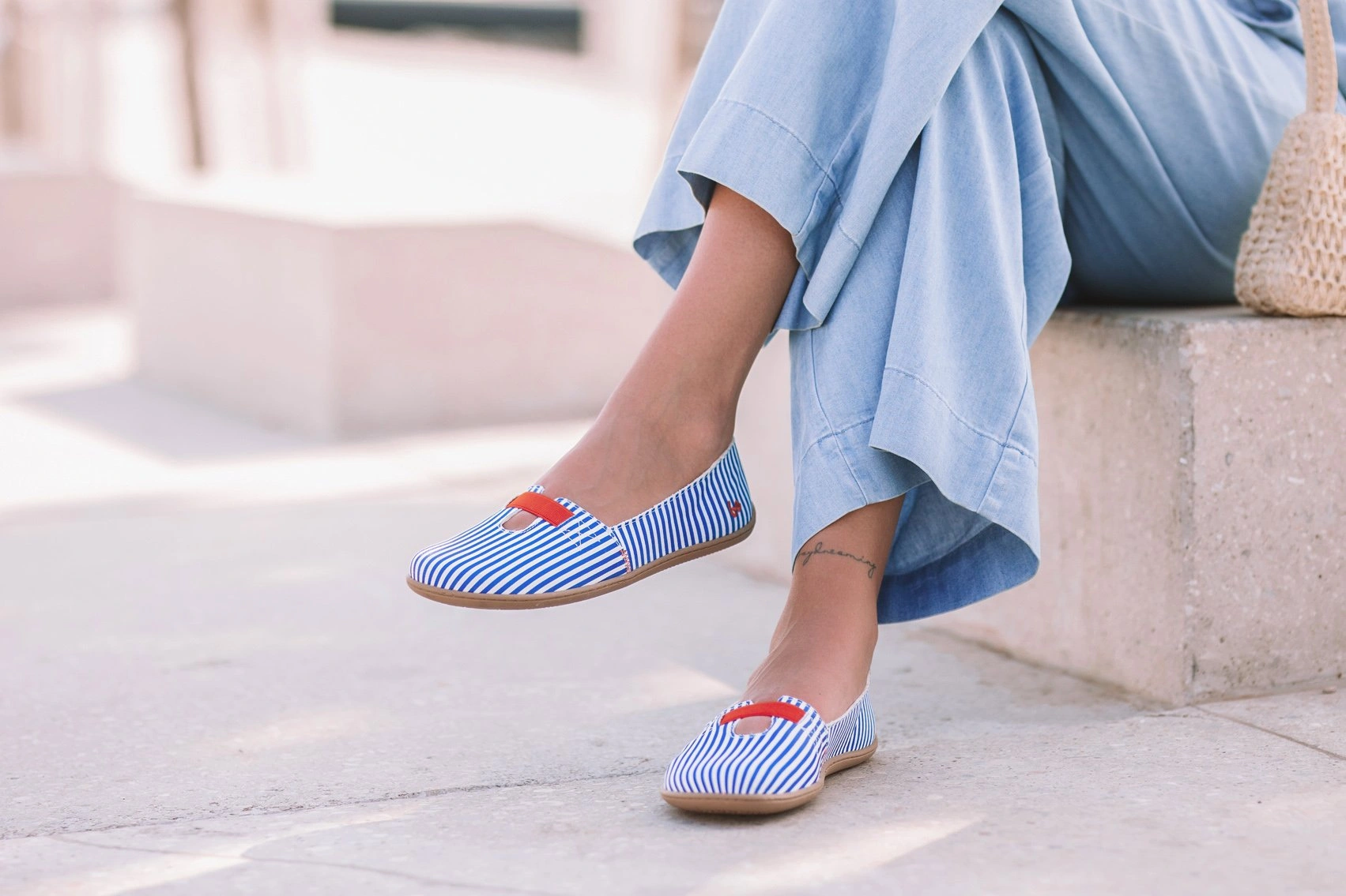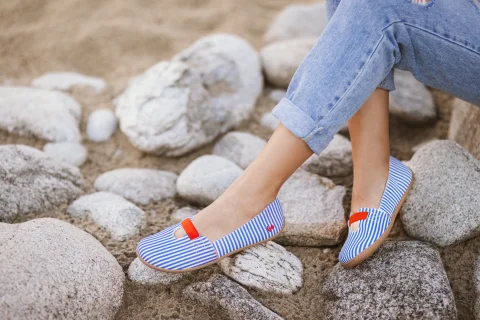Kauniin kesäiset Be Lenka Harmony ballerinat ovatpaljasjalkakengät, jotka ovat yhtä mukavia kuin tyylikkäitä raikkaassa sinivalkoraidallisessa designissaan.