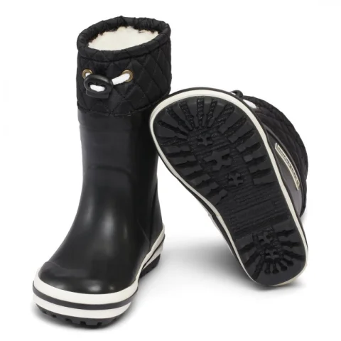 Barfotastövlarna från Bundgaard är gjorda i en stilren och klassisk design. Stövlarna har en bekväm och naturlig passform och är enkla att dra på. Denna Sailor High Warm -modell är fodrad med skönt ullfoder, vilket gör den tålig i kallare väder. Den finns också med lite lägre skaft (Sailor Low Warm). Båda Sailor modellerna är quiltad upptill och går att spänna åt med snöre. Barfotastövlarna från Bundgaard är tillverkad i naturligt gummi, vilket gör dem flexibla och mjuka. Stövlarna finns i många olika färger och mönster. \n \nSe längre ner för storlekstabell och råd.